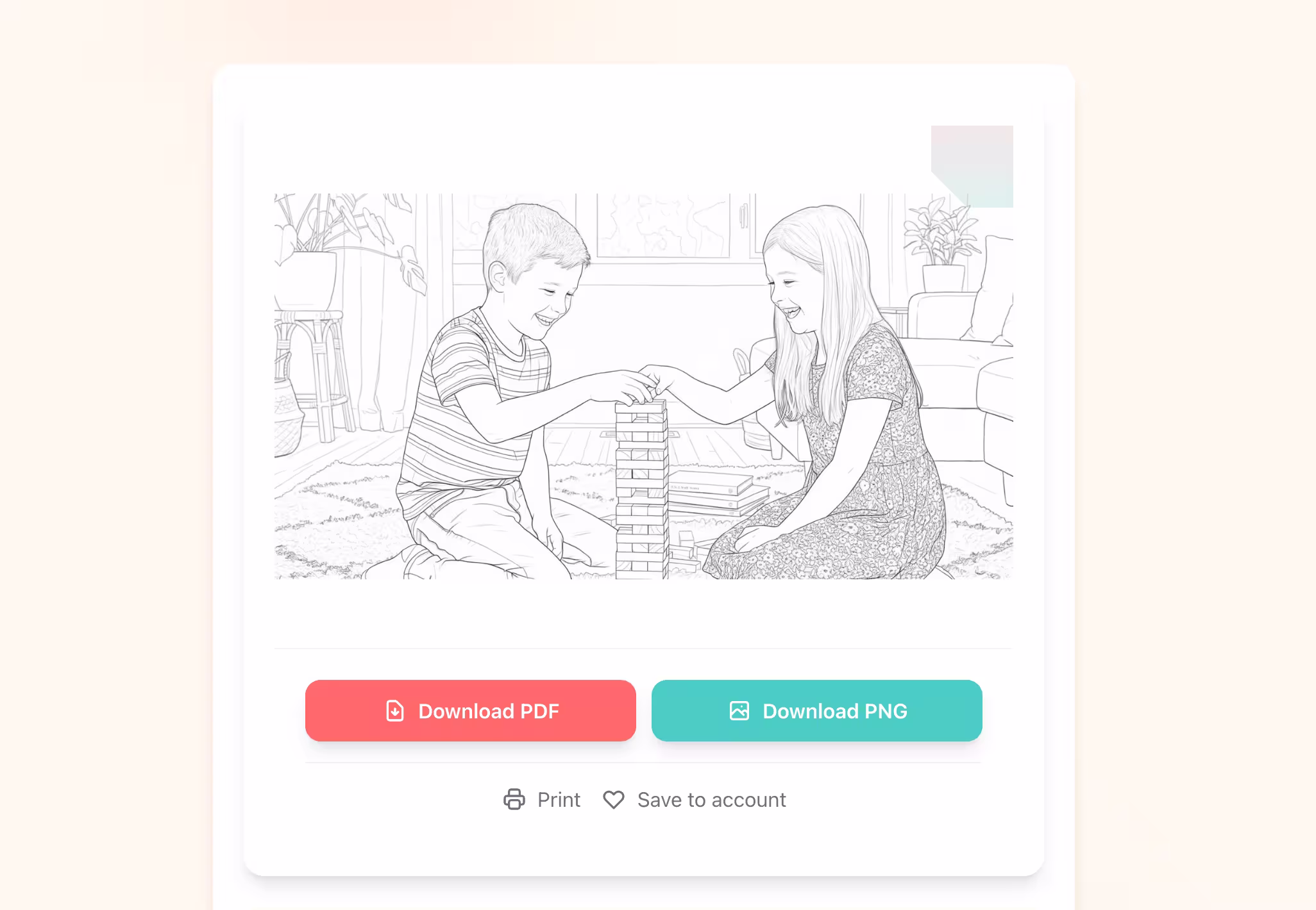 Watch your children bring their own memories to life with pencils and imagination. Create custom coloring pages from any photo in minutes.